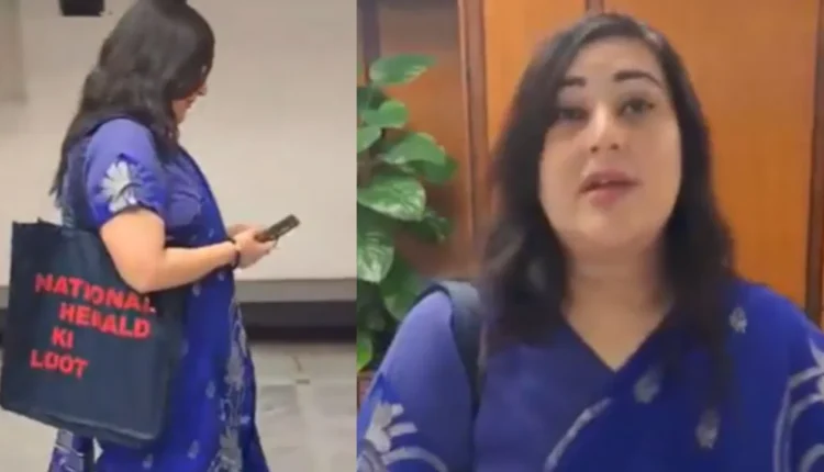 Delhi: भ्रष्टाचार पर निशाना, ‘नेशनल हेराल्ड की लूट’ बैग लेकर संसद पहुंचीं बांसुरी स्वराज