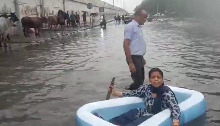 Delhi Water Logging: दिल्ली बारिश से जलमग्न एनएच-24: AAP का भाजपा पर तीखा हमला, सड़कों पर उतरीं नाव